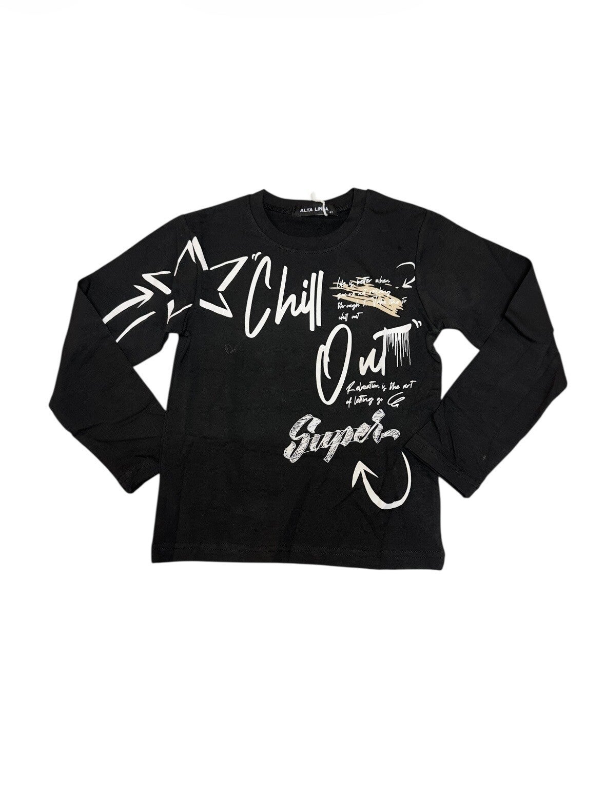 Maglia caldo cotone girocollo con scritte. Disponibile in 2 colori da 4 a 14 anni