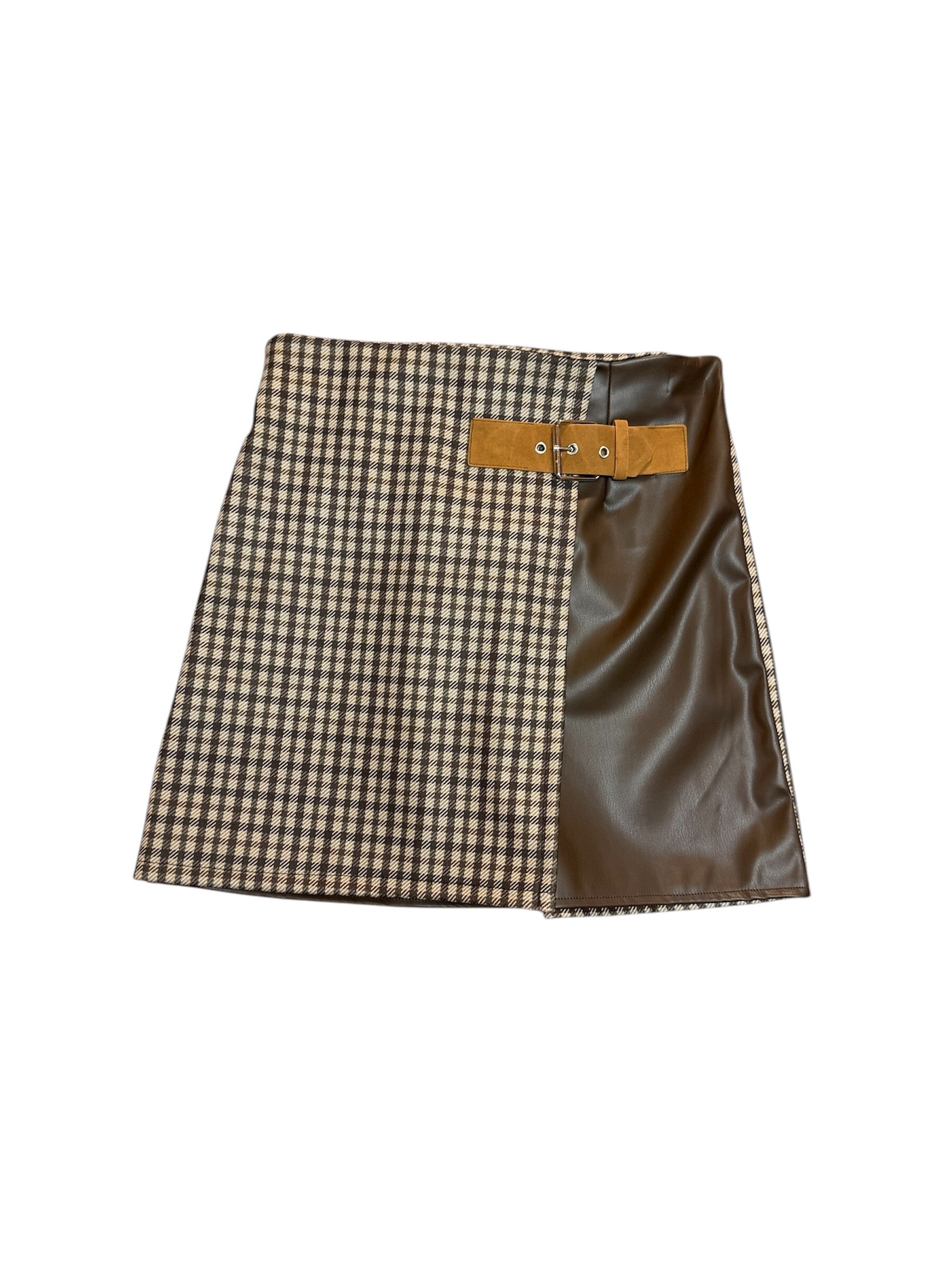 Gonna calda metà tessuto metà ecopelle. Elasticizzata in vita tg unica. 2 colori