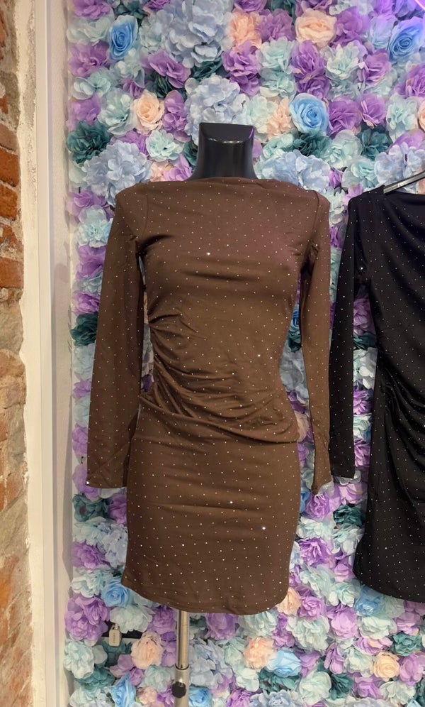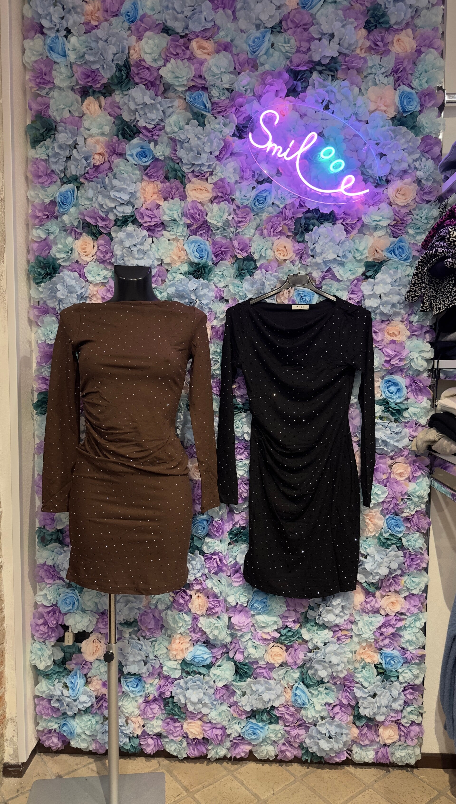 Abito in cotone scollo largo, elasticizzato disponibile in S/M o L/XL. Vestibilita slim con lurex. 2 colori