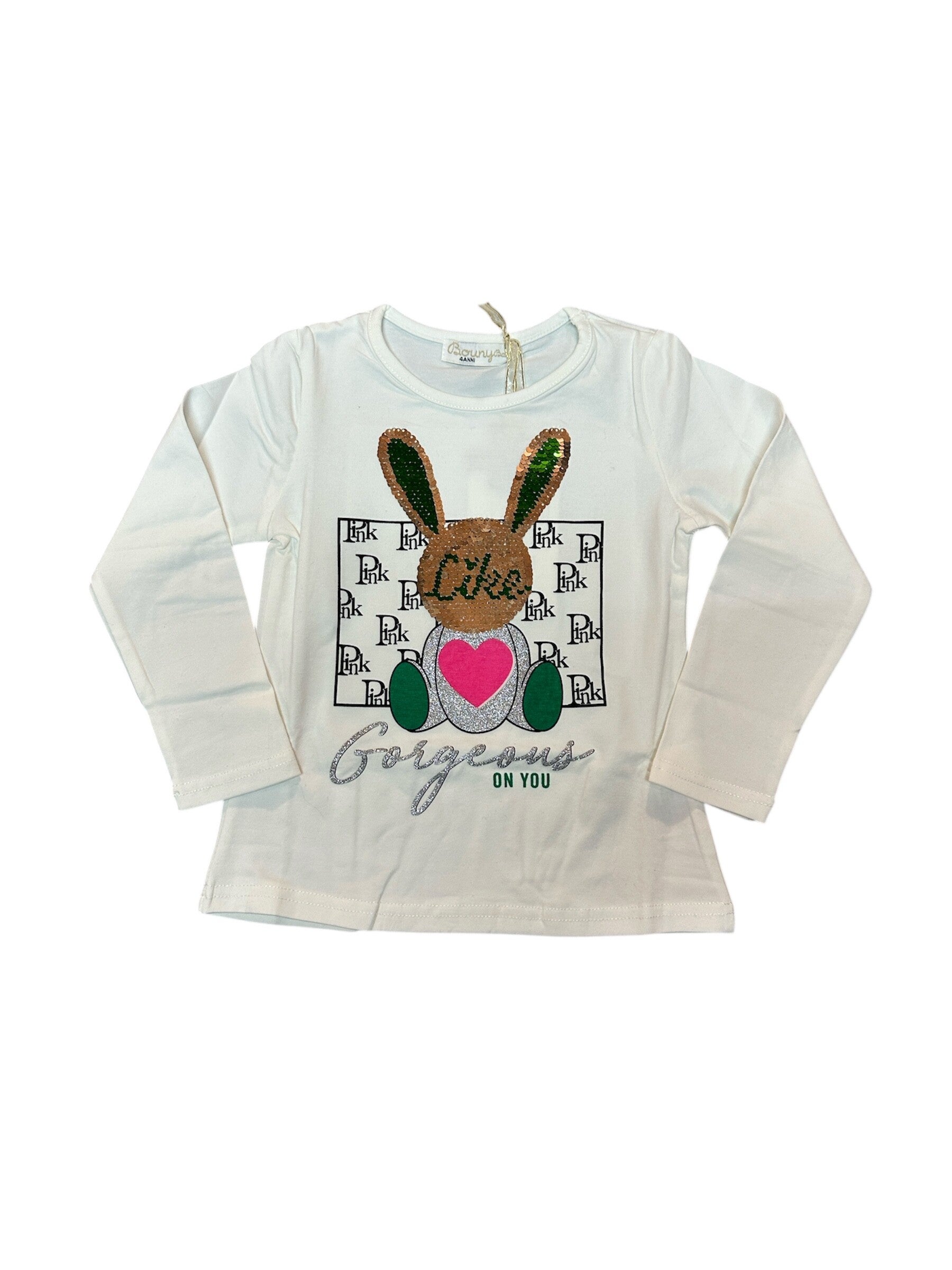 Maglia in caldo cotone con payettes girabrilla stampa coniglietto. Da 4 a 12 anni disponibile in 3 colori