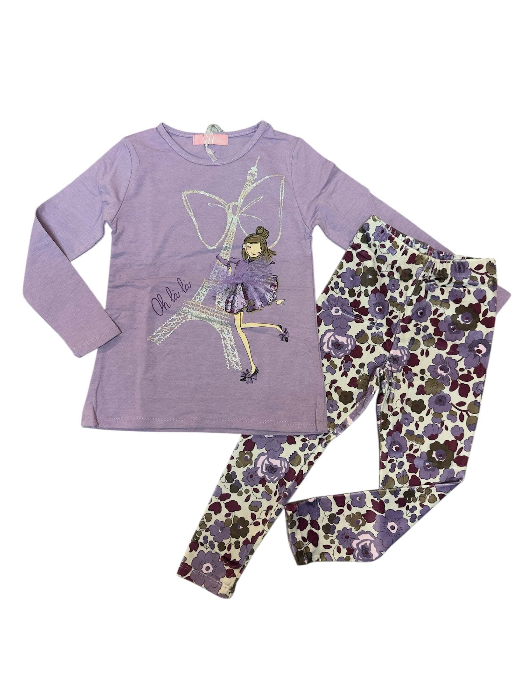 Completo composto da maxi maglia girocollo in caldo cotone e leggins in velluto. Disponibile in 3 colori, da 4 a 12 anni
