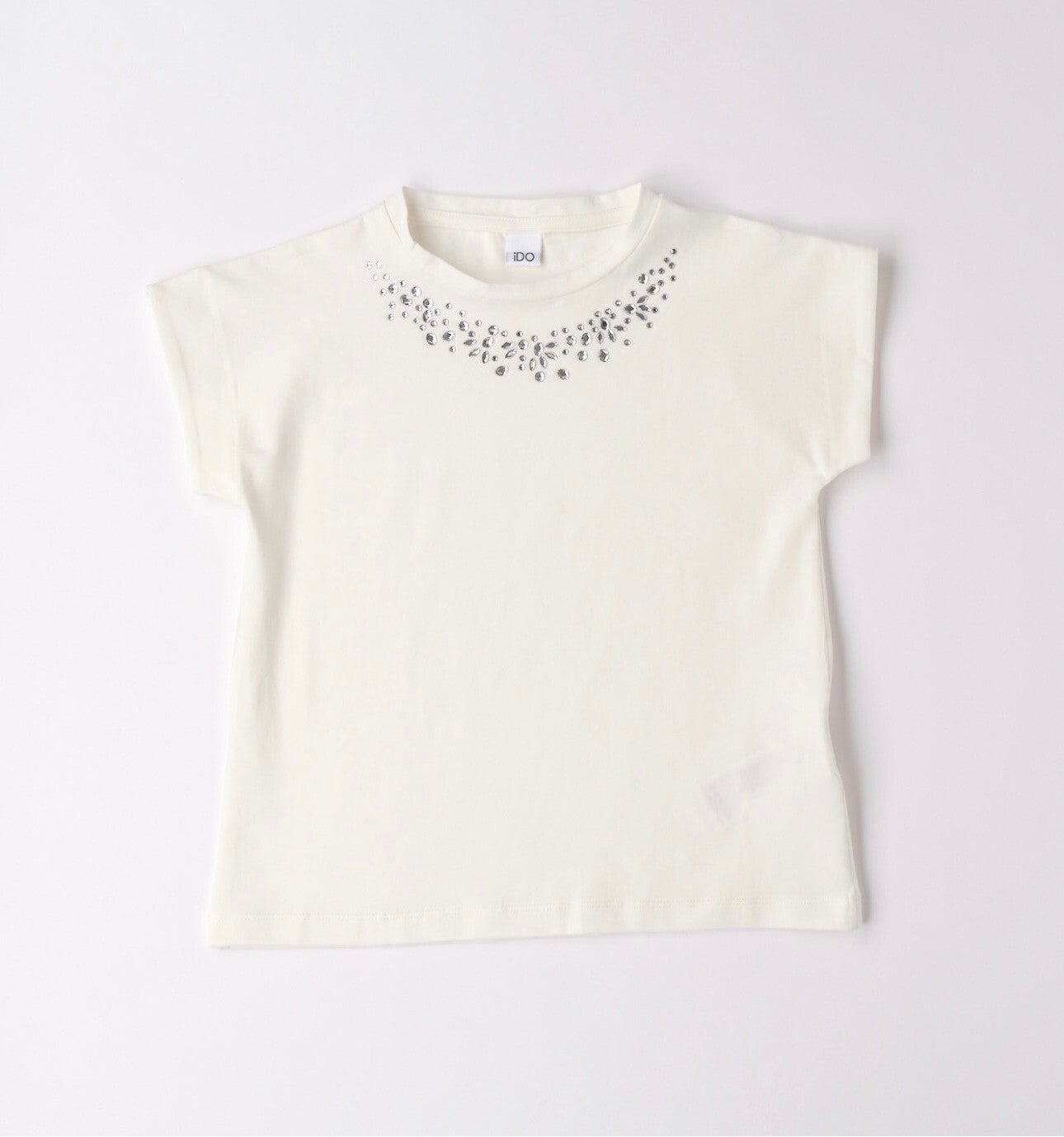 T shirt puro cotone Ido bianco avorio con collier di Swarovski. Casual o elegante modello squadrato. Da 8 a 16 anni