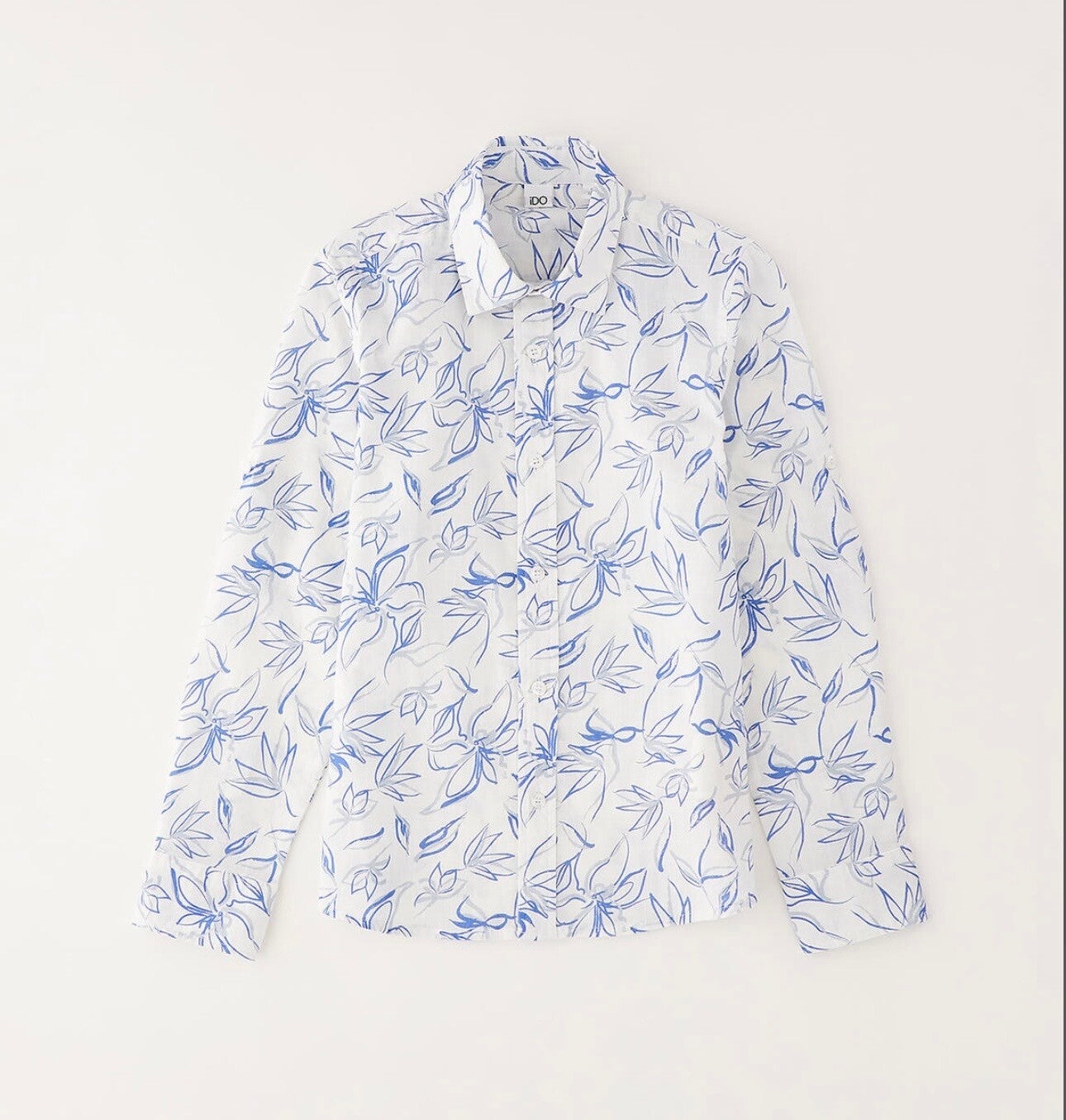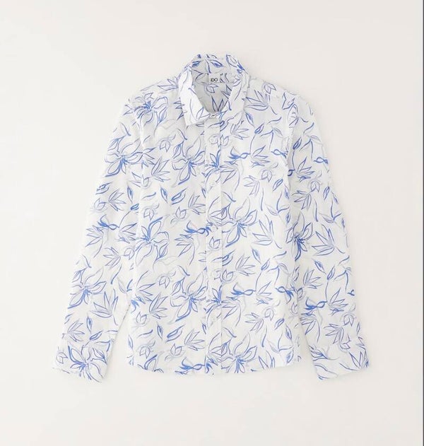 Camicia base bianca con stampa verde o blu. Da 8 a 16 anni Ido