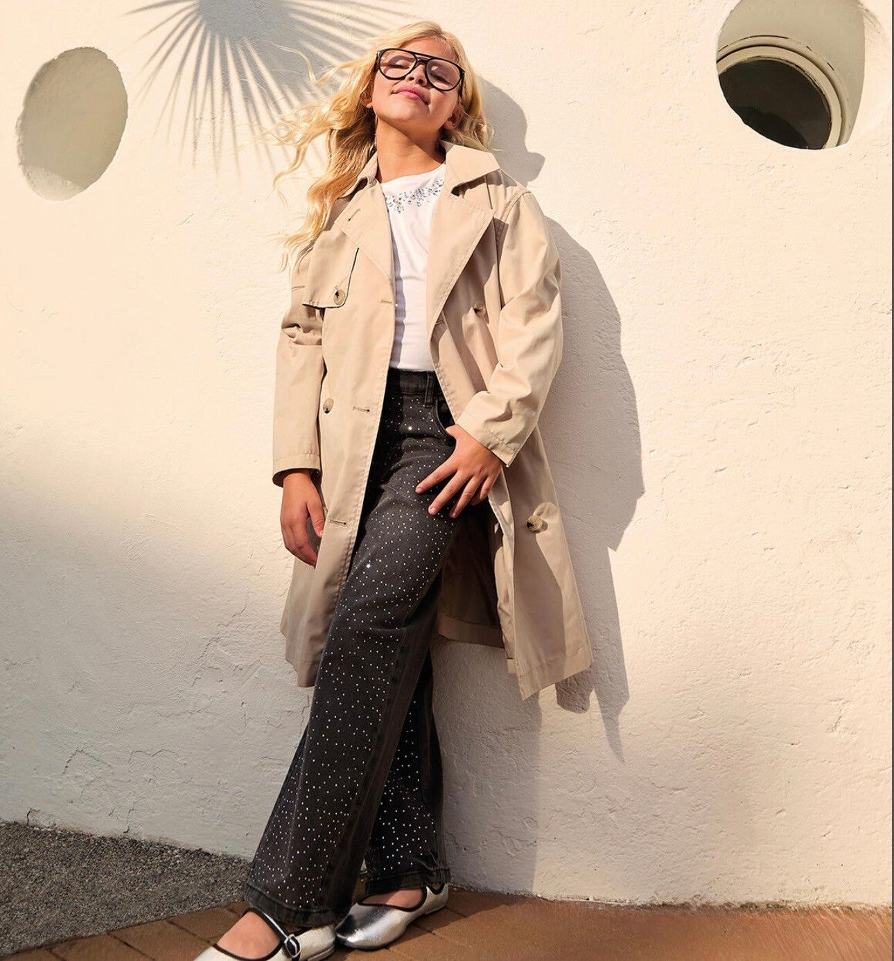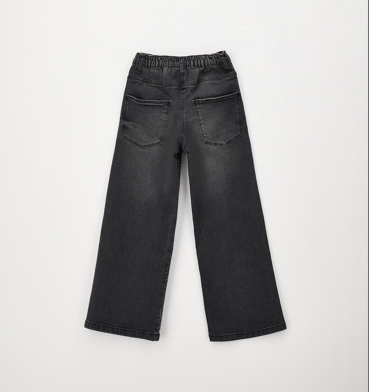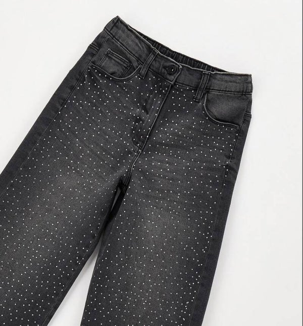 Jeans Ido gamba larga colore grigio antracite con brillantini davanti. Coilulisse interna da stringere. Eleganti o casual. Da 8 a 16 anni