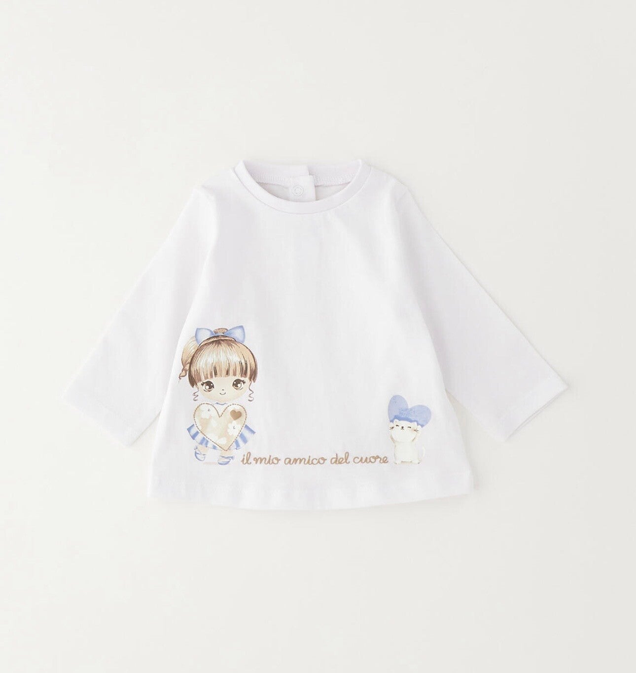 Maglia puro cotone girocollo Ido base bianca con stampa, da 1 a 12 mesi