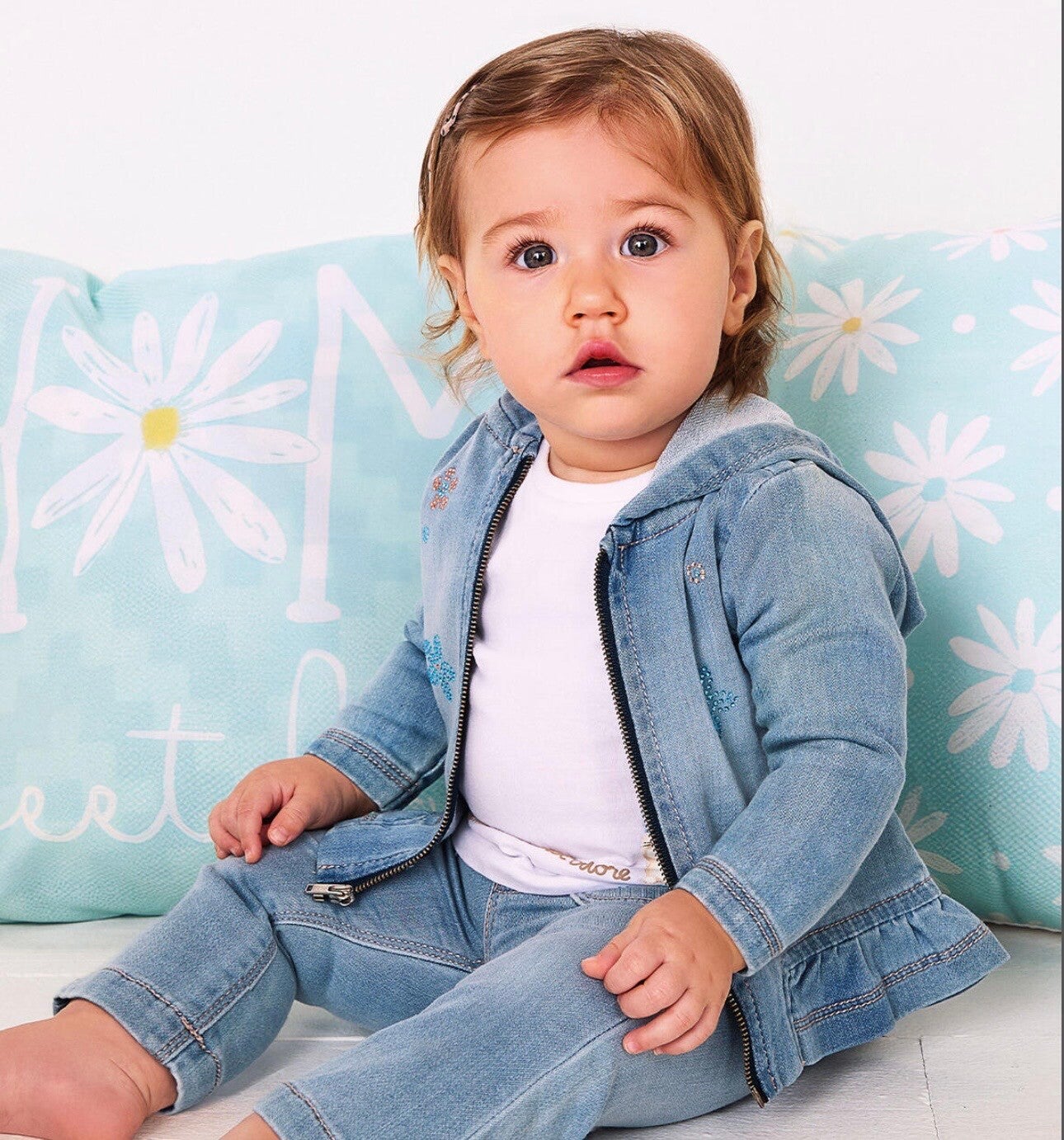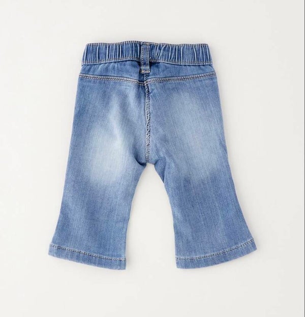 Jeans Ido tela morbida senza bottoni con elastico in vita. Lavaggio chiaro da 1 a 12 mesi