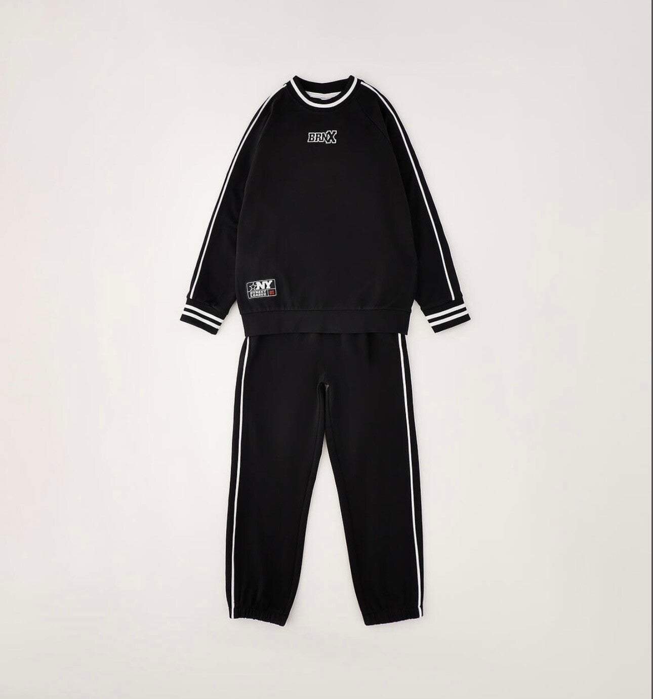 Tuta cotone IDo composta da felpa chiusa e pantalone, colore nero con inserti bianchi. Da 8 a 16 anni