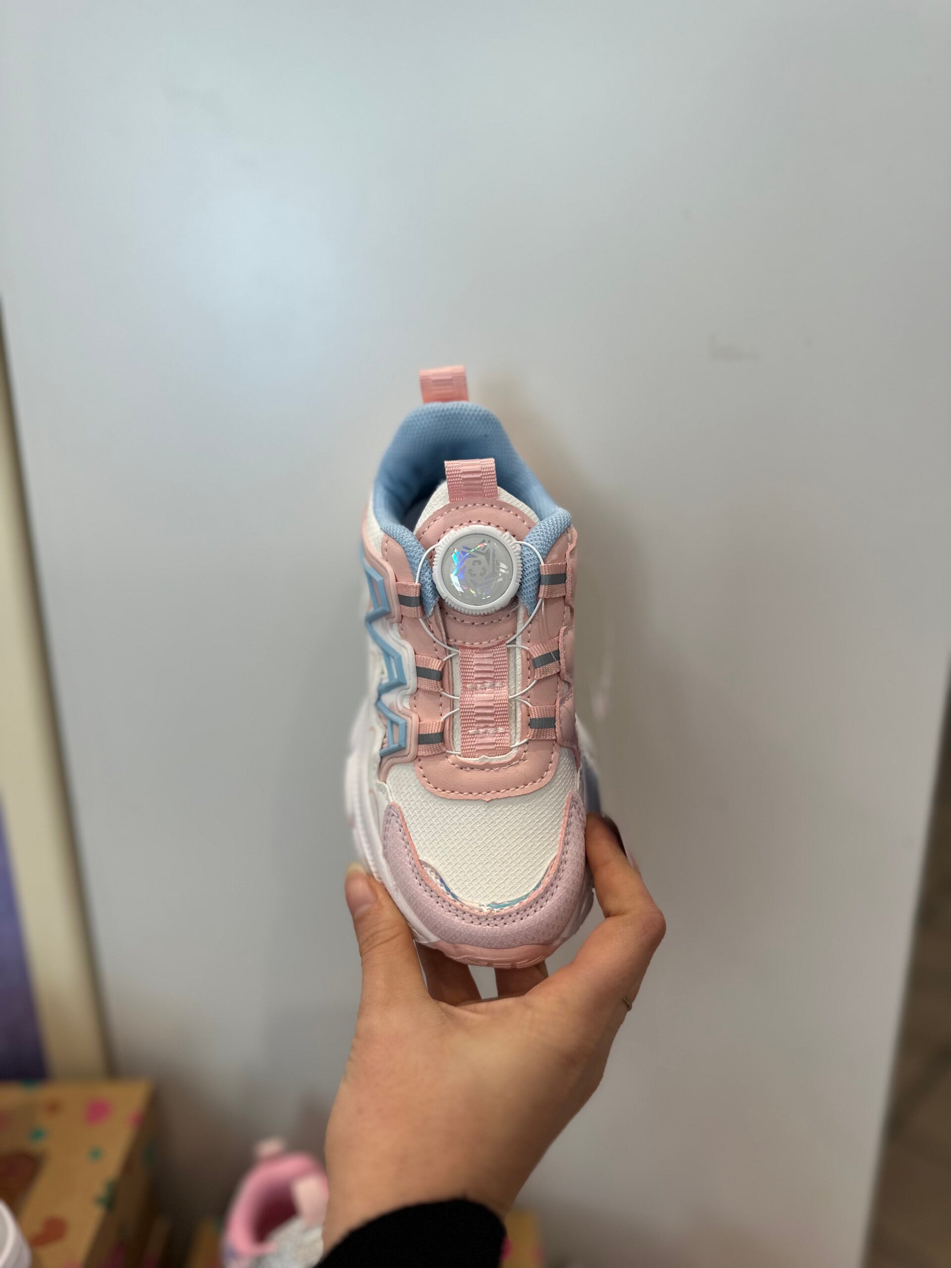 Sneakers con platform alto, lacci che si stringono tramite boa (rotella). Rosa da 25 a 36