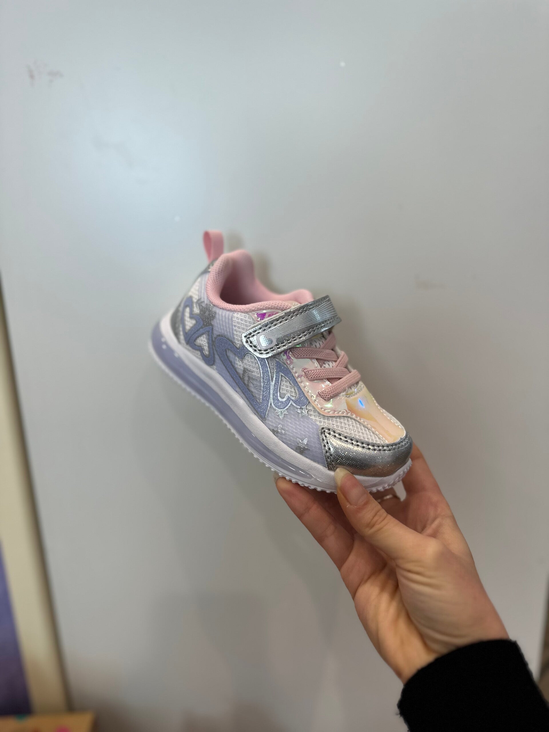 Sneakers tessuto traspirante, disponibili in 2 colori, con lici, velcro e lacci elastici. Da 25 a 30