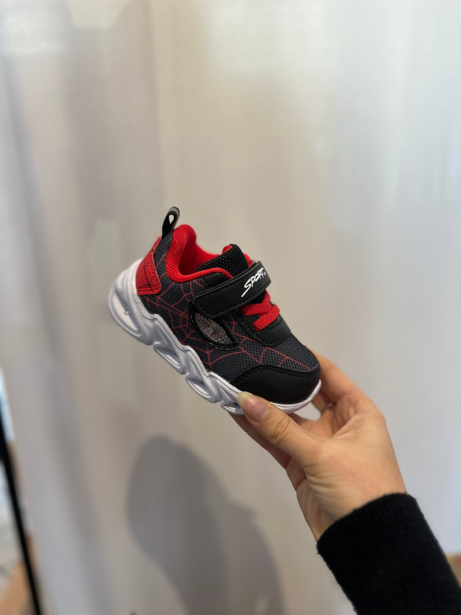 sneakers tessuto traspirante con luci. Con velcro e lacci elastici disponibile in 2 colori da 20 a 25