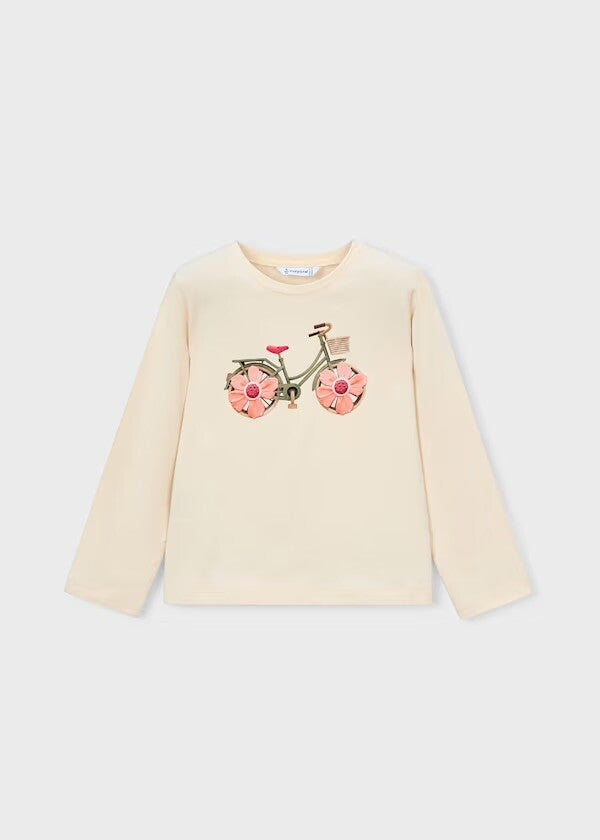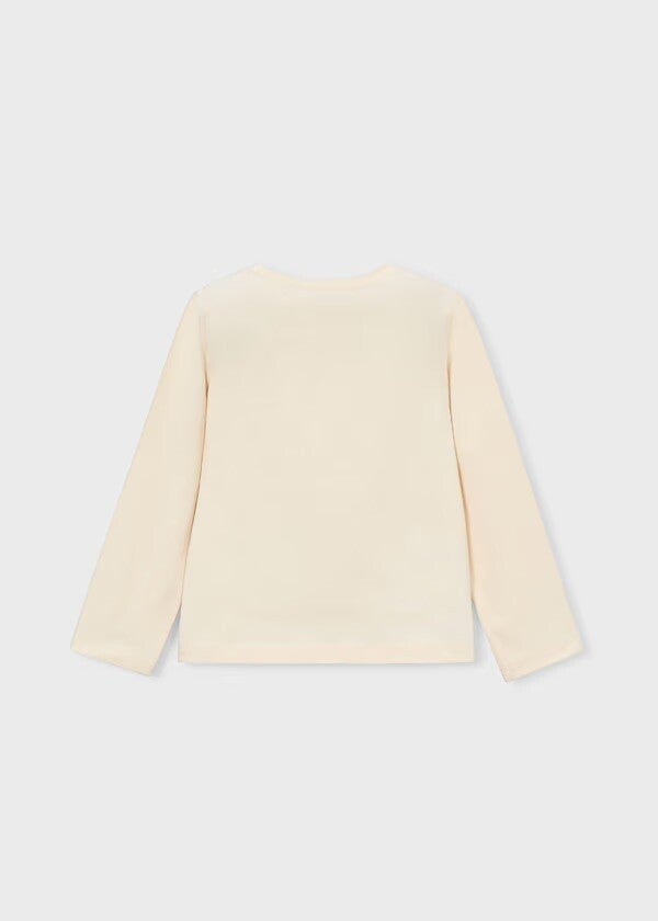 Maglia girocollo cotone Mayoral color burro con stampa. Da 4 a 10 anni