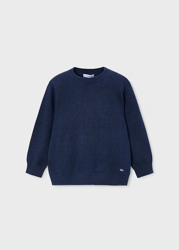 Maglioncino girocollo cotone Mayoral, disponibile blu notte o sabbia da 4 a 10 anni
