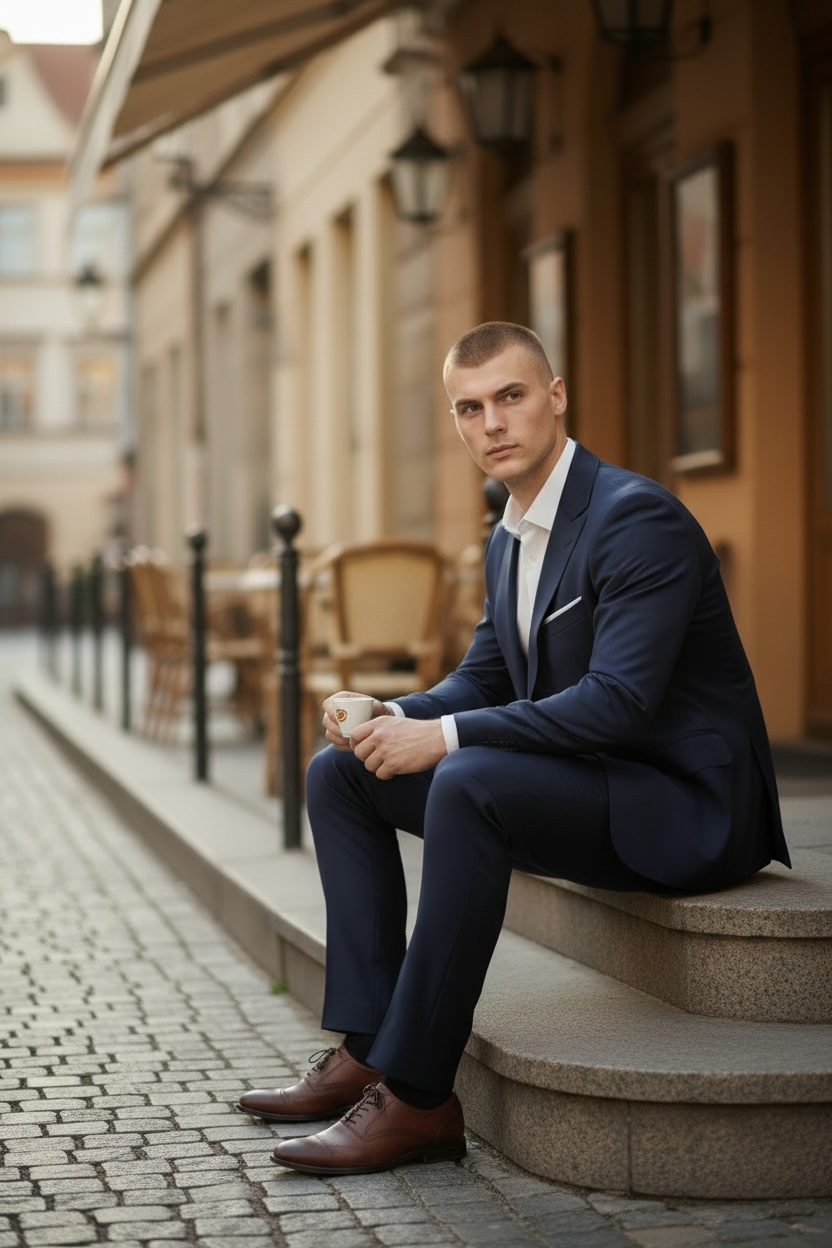 Completo classico con inserti in raso blu notte, da 46 a 56