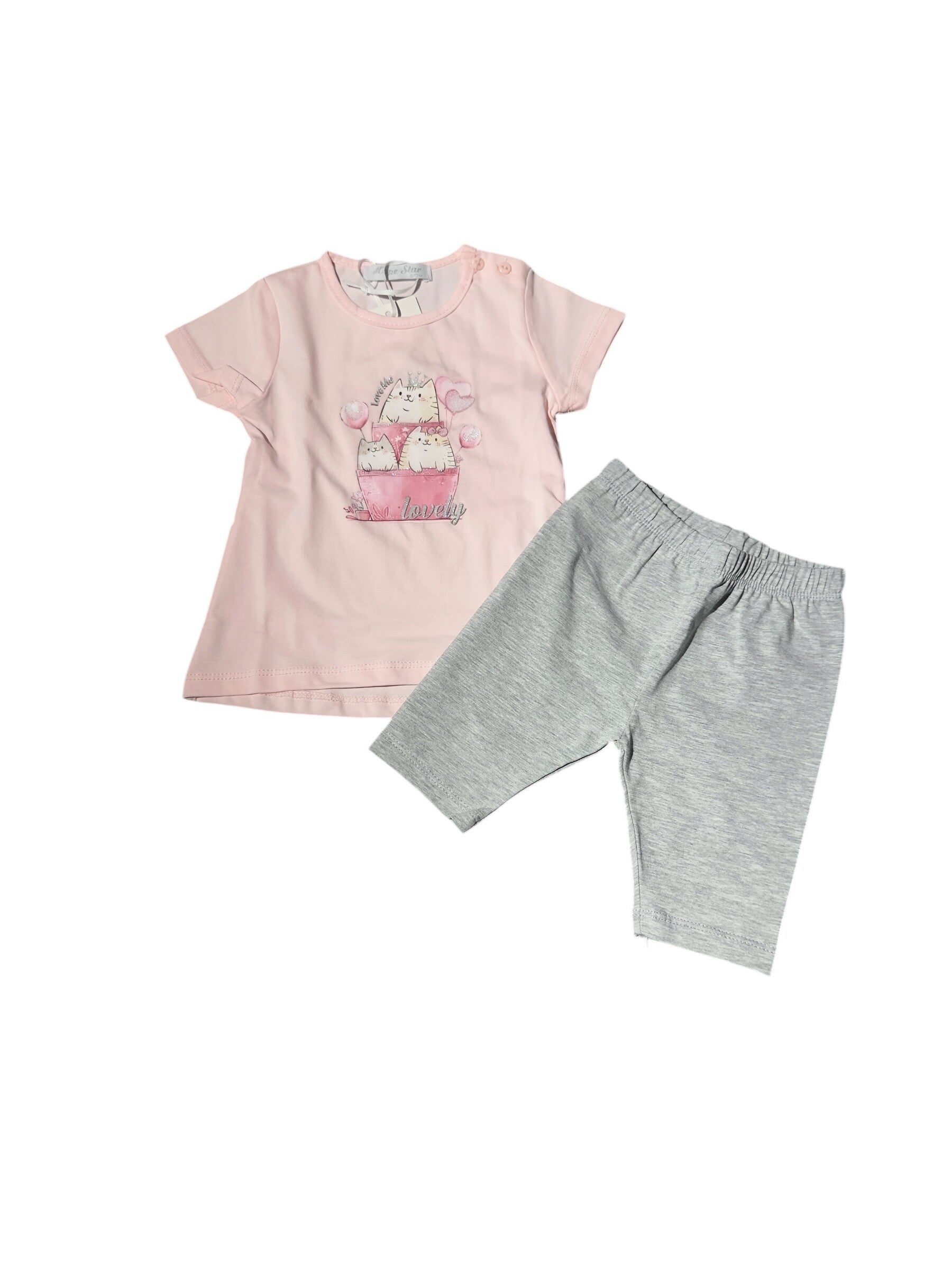 Completo cotone composto ta maxi t shirt e leggins al ginocchio. 3 colori da 1 a 18 mesi